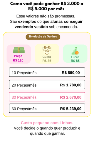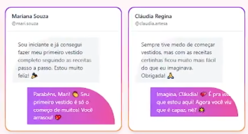 Isso depende do seu ritmo, mas muitas alunas conseguem fazer o primeiro vestido em poucos dias seguindo o passo a passo.